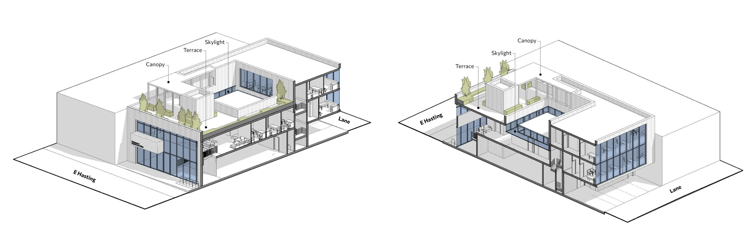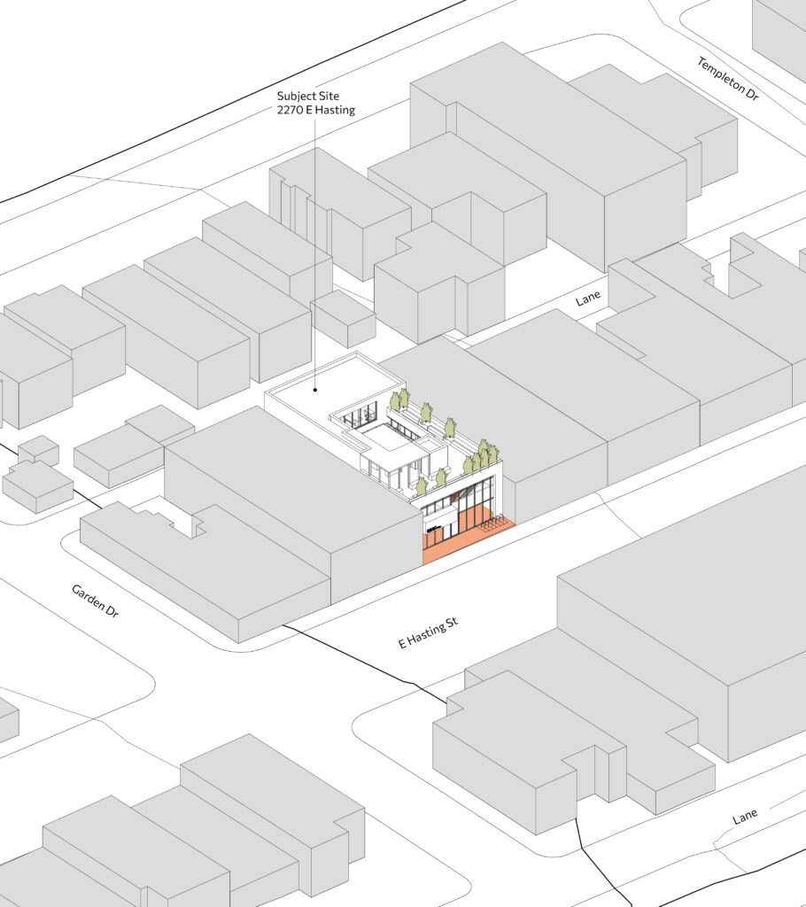 Through its form, material expression, and careful response to context, 2270 E Hastings tells the story of a neighborhood-focused building—one rooted in community needs, scaled to its surroundings, and designed to serve Grandview-Woodland as it continues to grow.